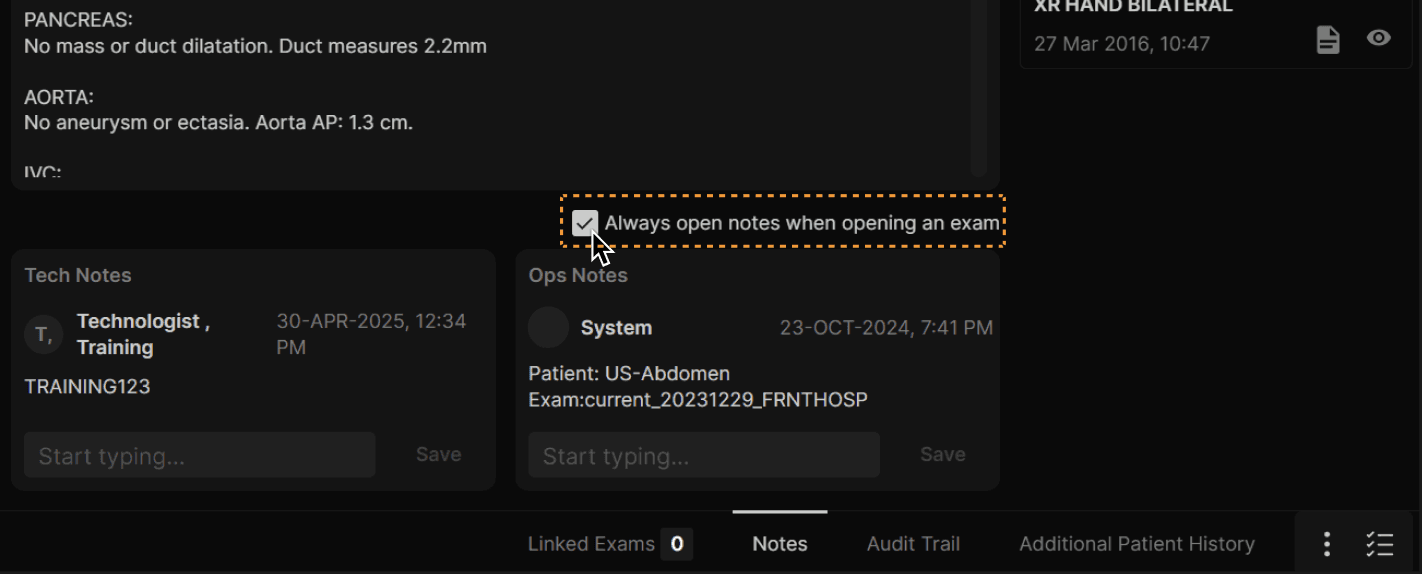 There is also an option to automatically open the Notes section whenever you enter a exam. Check the checkbox to turn this option On or Off. | |
