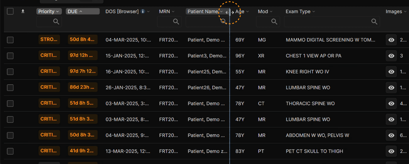 Column width is adjustable by selecting the side of a column name and dragging your mouse.