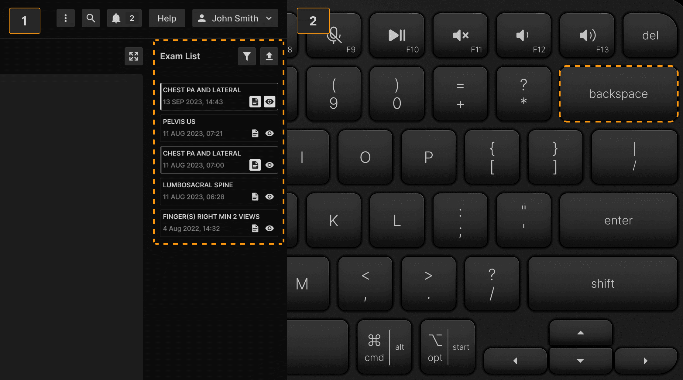 2. The Backspace key can be used to cycle through comparison exams. Each click of the Backspace key will display the next older comparison exam, and then back to the most recent.