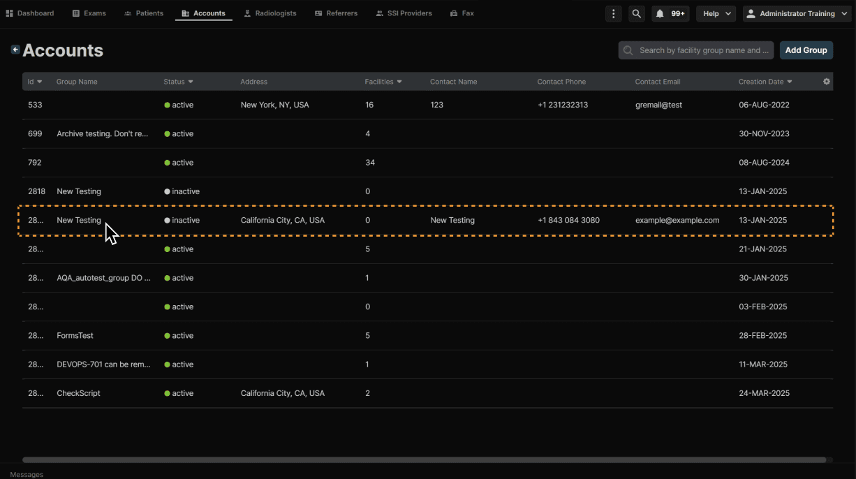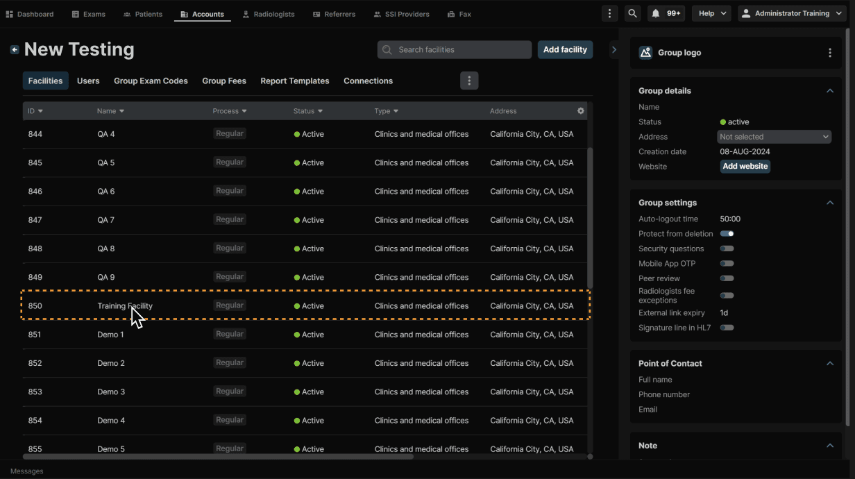 Select the facility group.