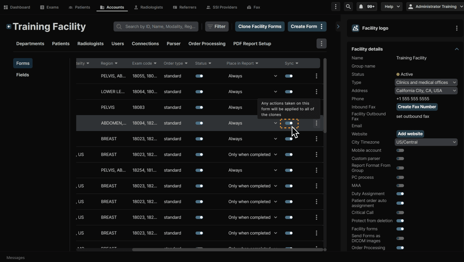 Click the Status toggle to enable/disable a form. | |