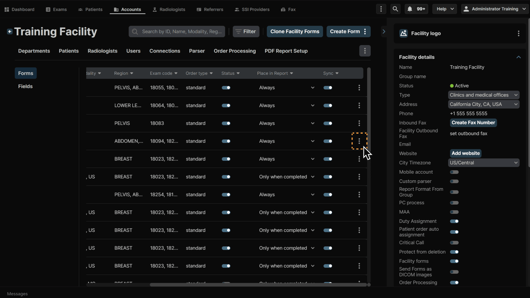 To clone, edit or delete a form, click the three dots at the end of a line item. | |