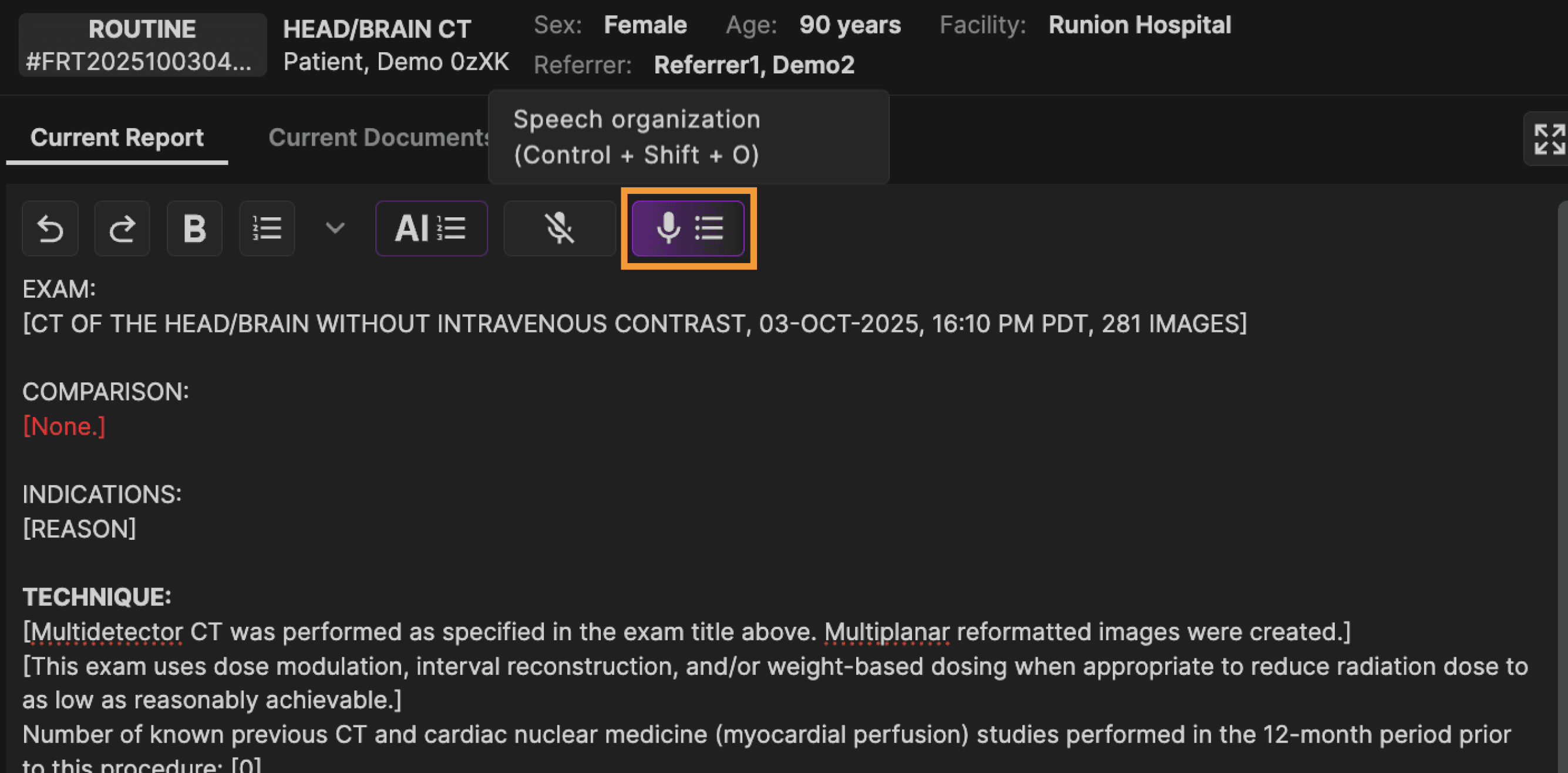 Click the speech organization button (or apply keyboard shortcut: Ctrl + shift + O) to open the speech organization window. | |
