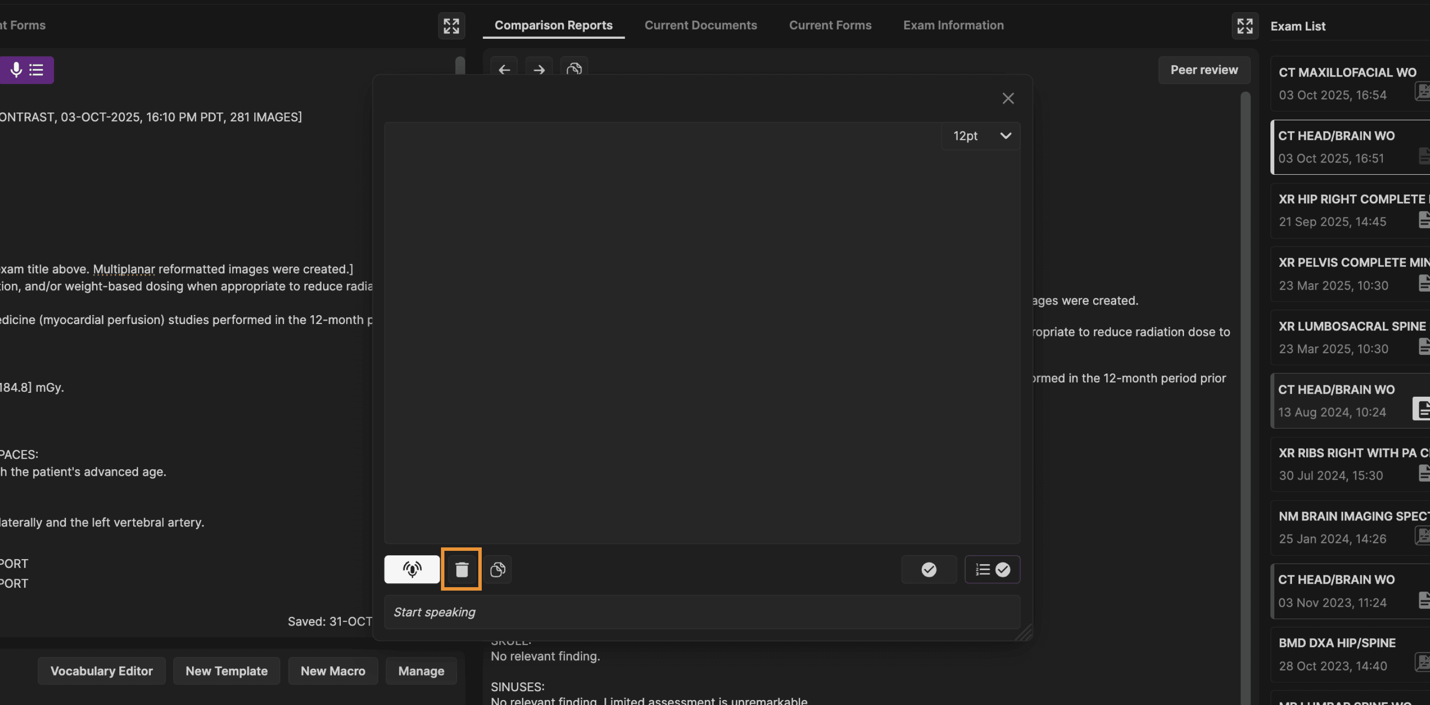 Click the delete button to clear all dictated content. | |
