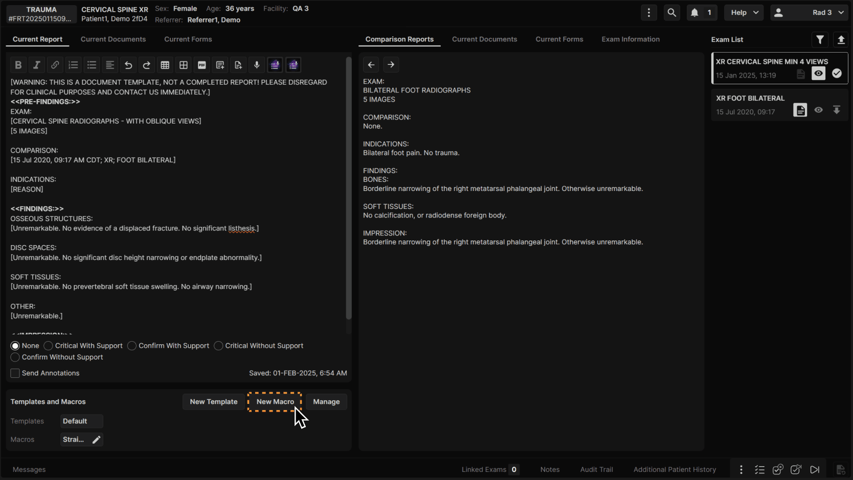 If you have highlighted text in your report before clicking “New Macro”, that text will automatically populate the new macro. You may use the following dialogue box to edit accordingly. | |