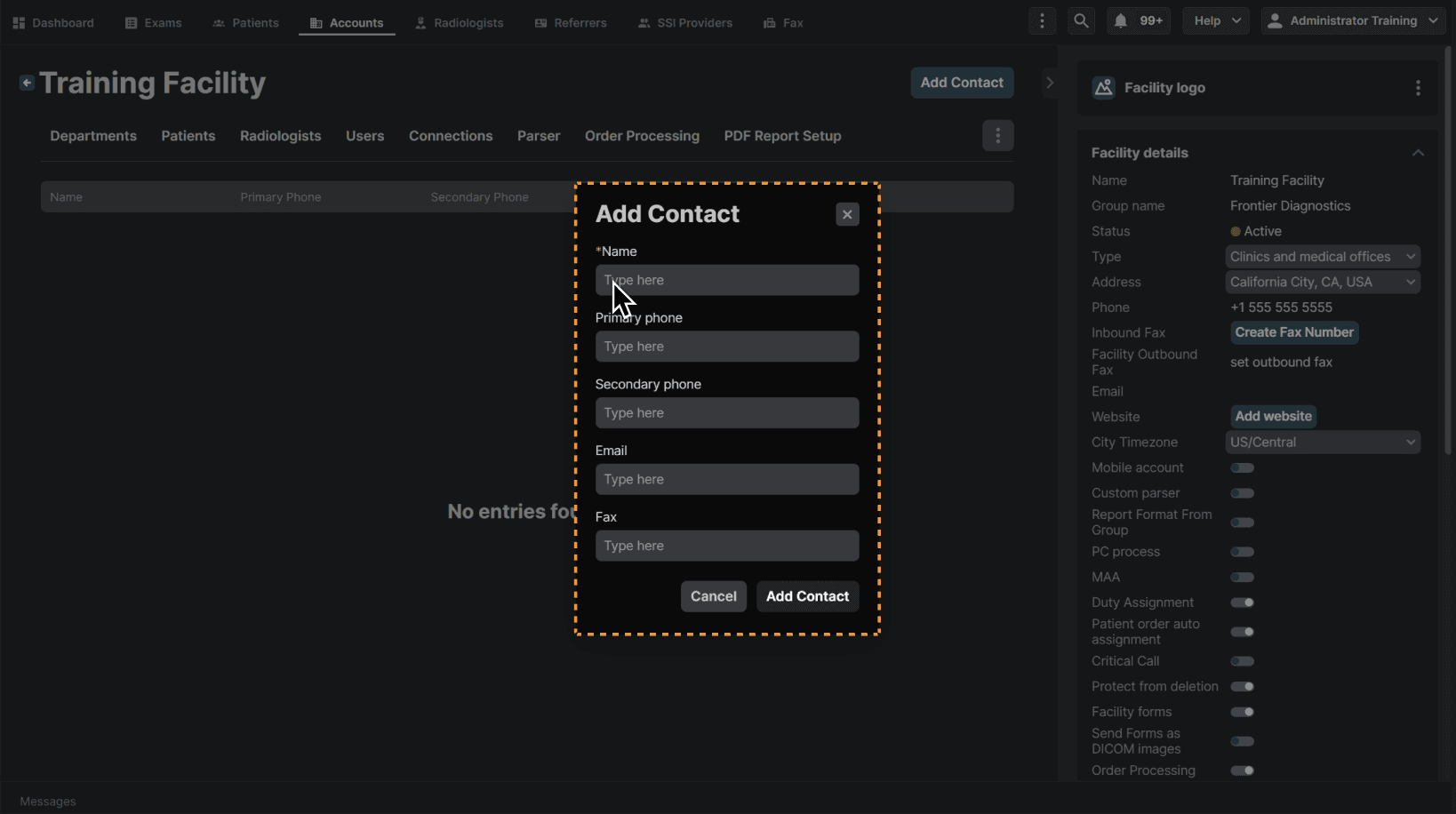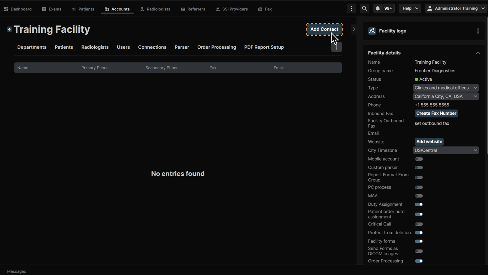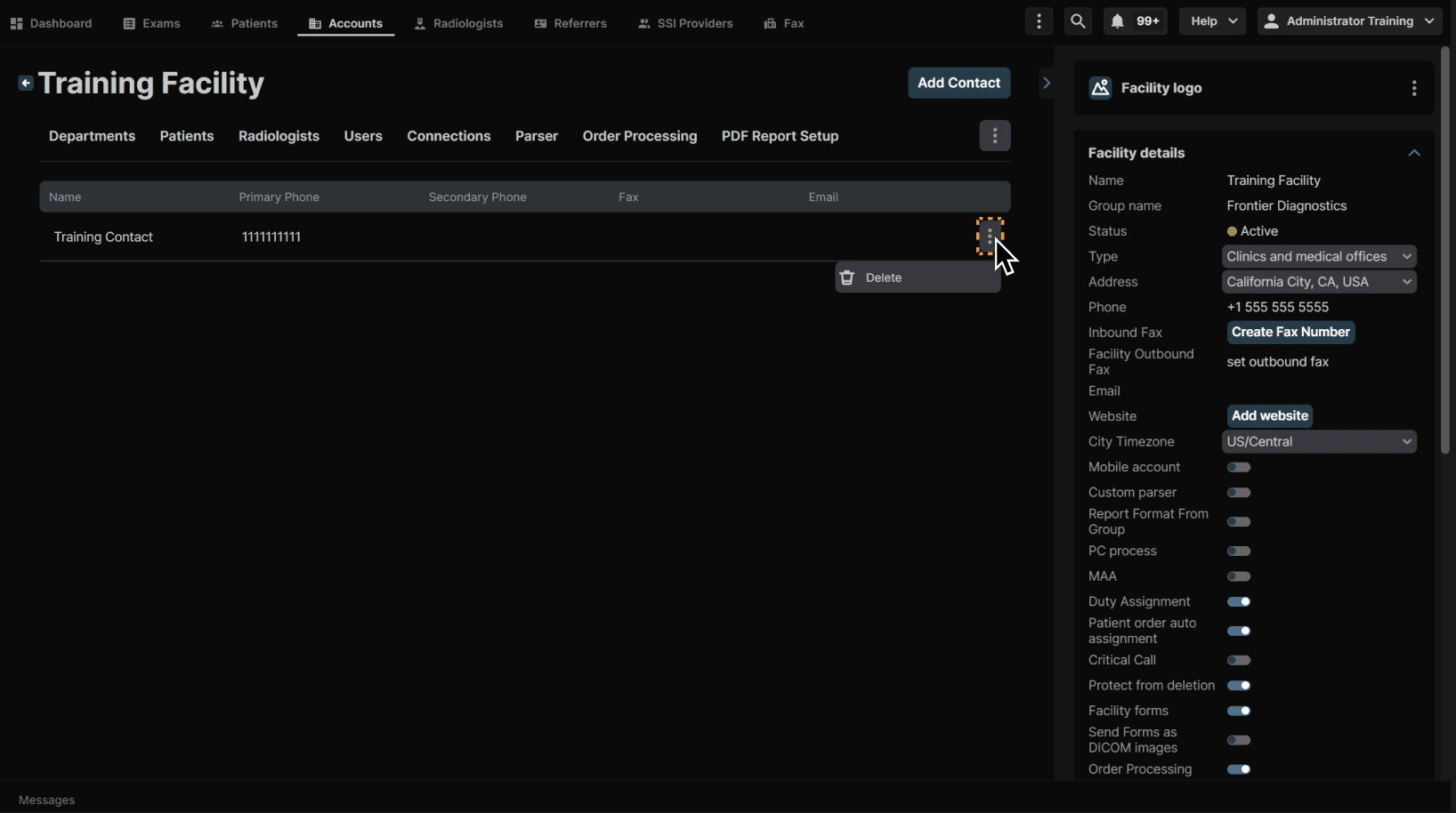 Managing facility’s/facility groups: Add/Delete facility directory contacts