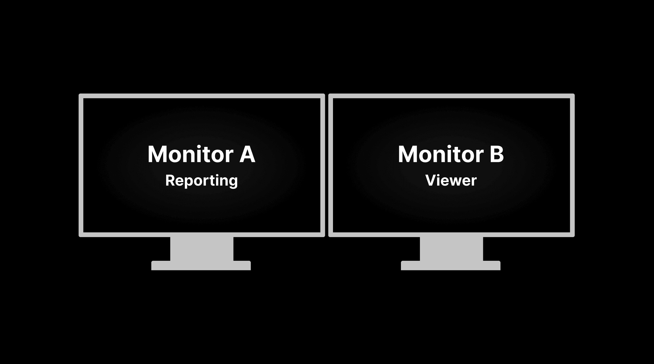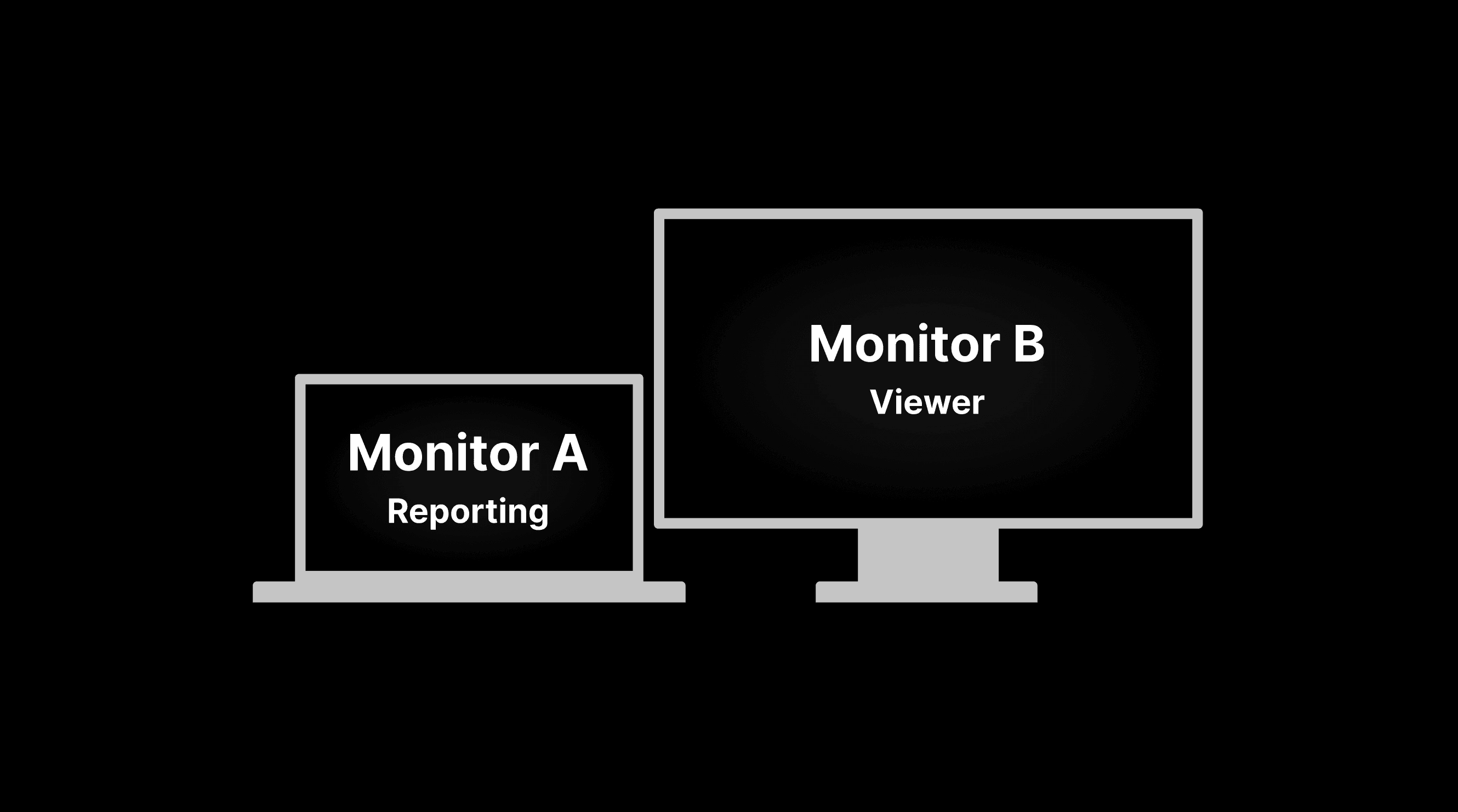 Monitor A will contain the reporting screen and monitor B the viewer. | |