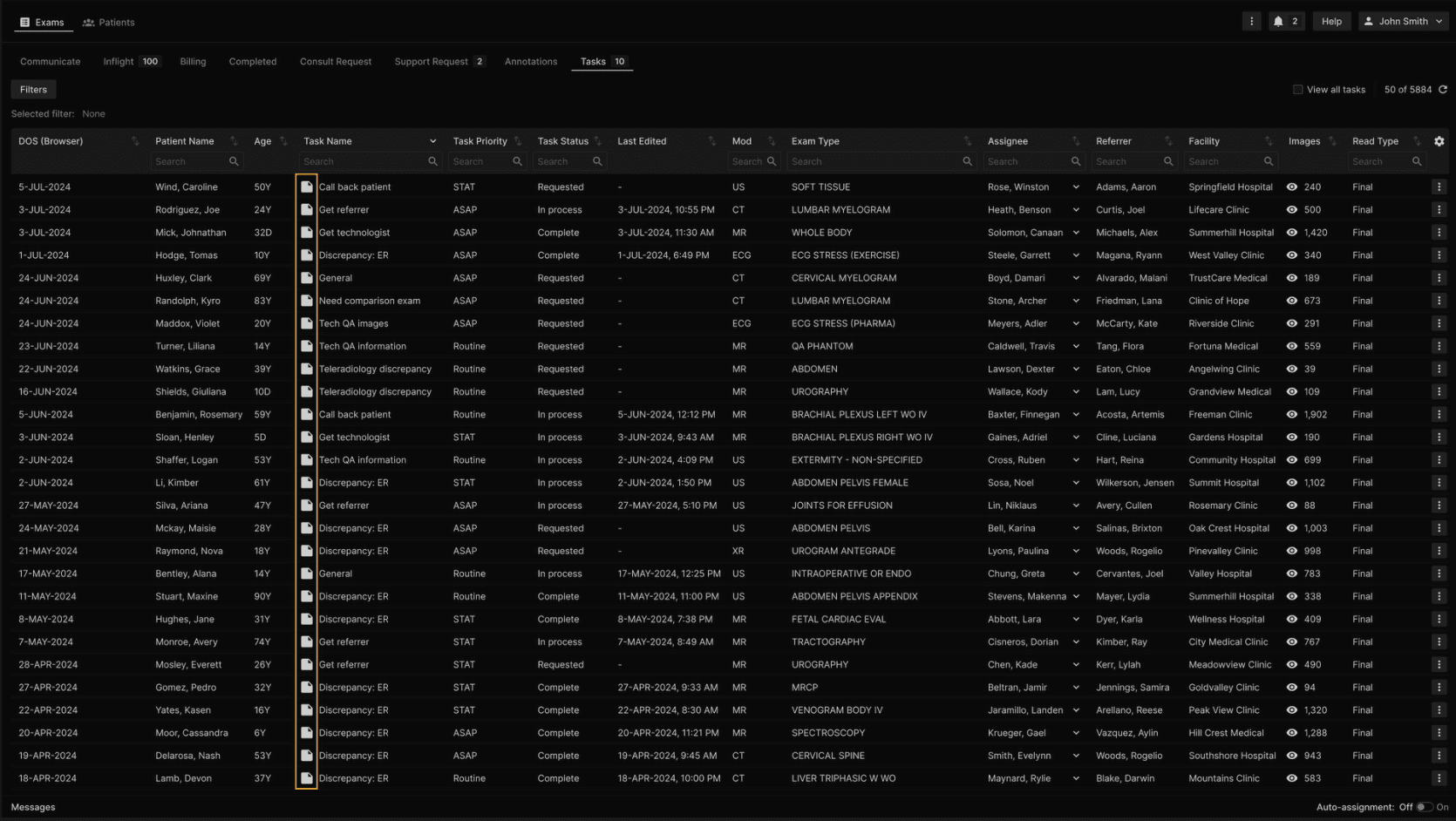 A counter in the Tasks tab indicates the amount of tasks that are "Requested" and "In Process", based on each user's visibility. | |