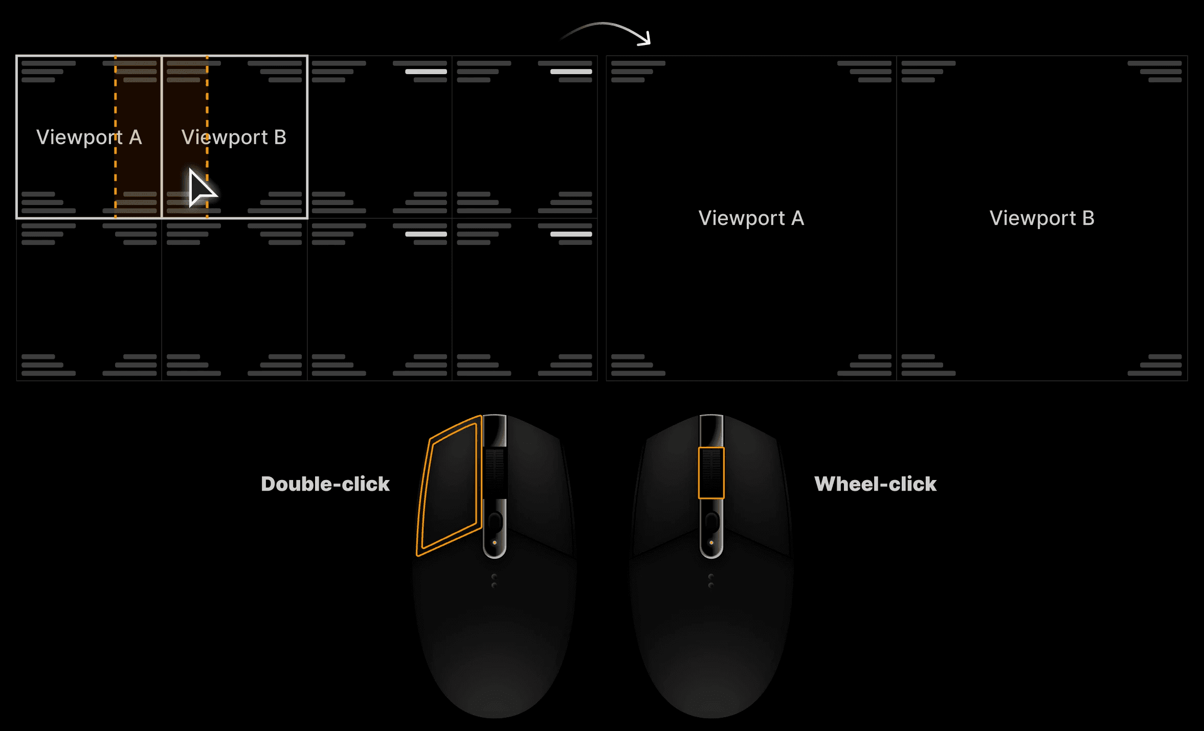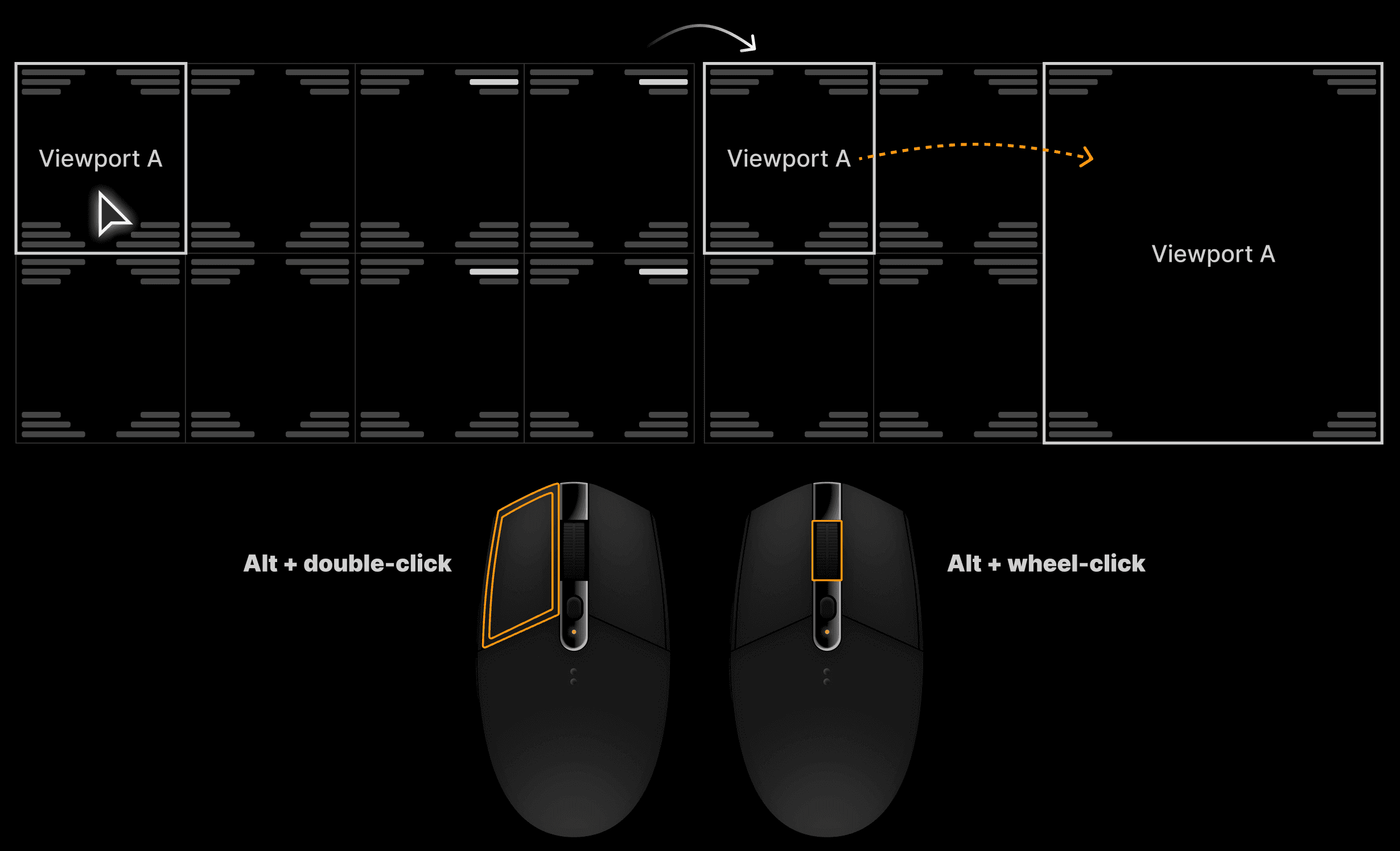 Alt + double-click or Alt + wheel-click: Sends the clicked image to the opposite panel. Orientation is preserved (left/right or top/bottom). This mirrors familiar behavior from DR Unity and enhances image navigation. | ||