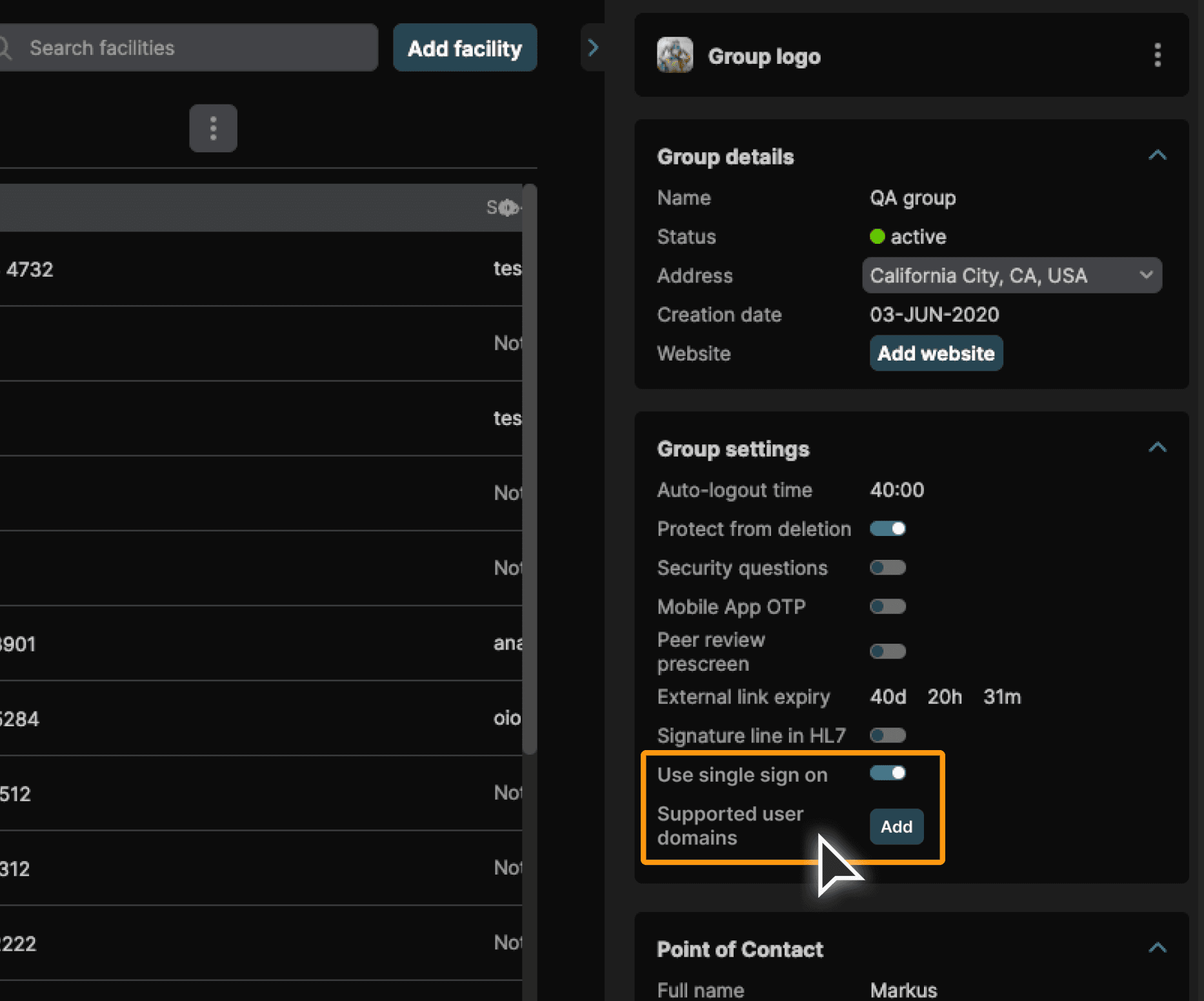 Improvements to single sign on - Add setting at facility level | ||