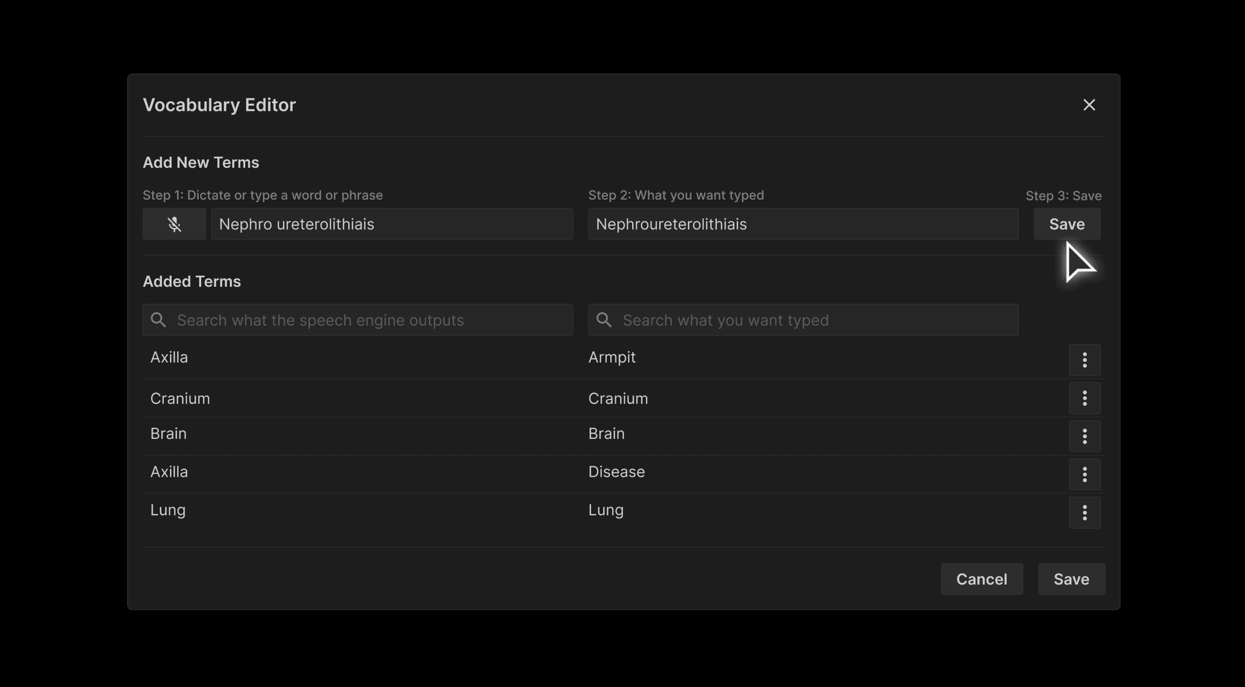 Solution: Introducing the User-Level Vocabulary Editor in the default speech engine: