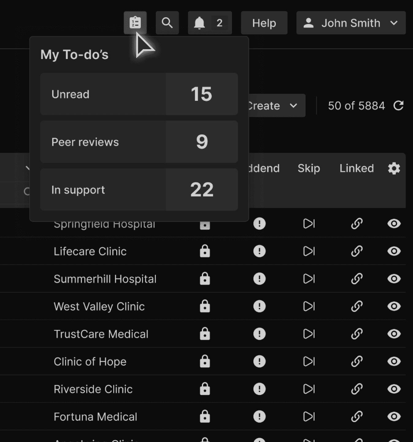 Solution: To enhance usability and streamline task management, a new "To-do" button has been introduced in the top ribbon of the UI, accessible from any tab. This feature provides RADs with a quick, centralized view of their pending actions: